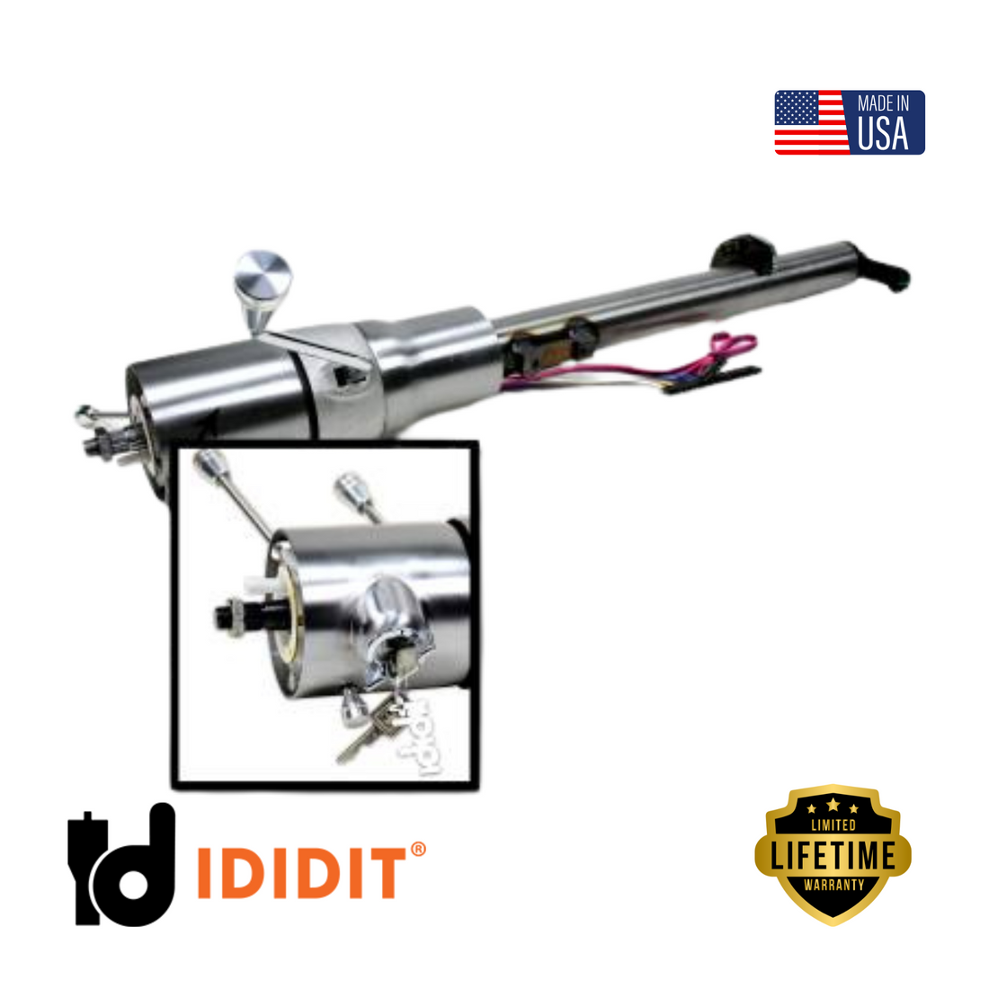 IDIDIT-1973-78 Chevy Truck / 1971-76 Impala Caprice Tilt Floor Shift with Ignition-Chrome-1520760020